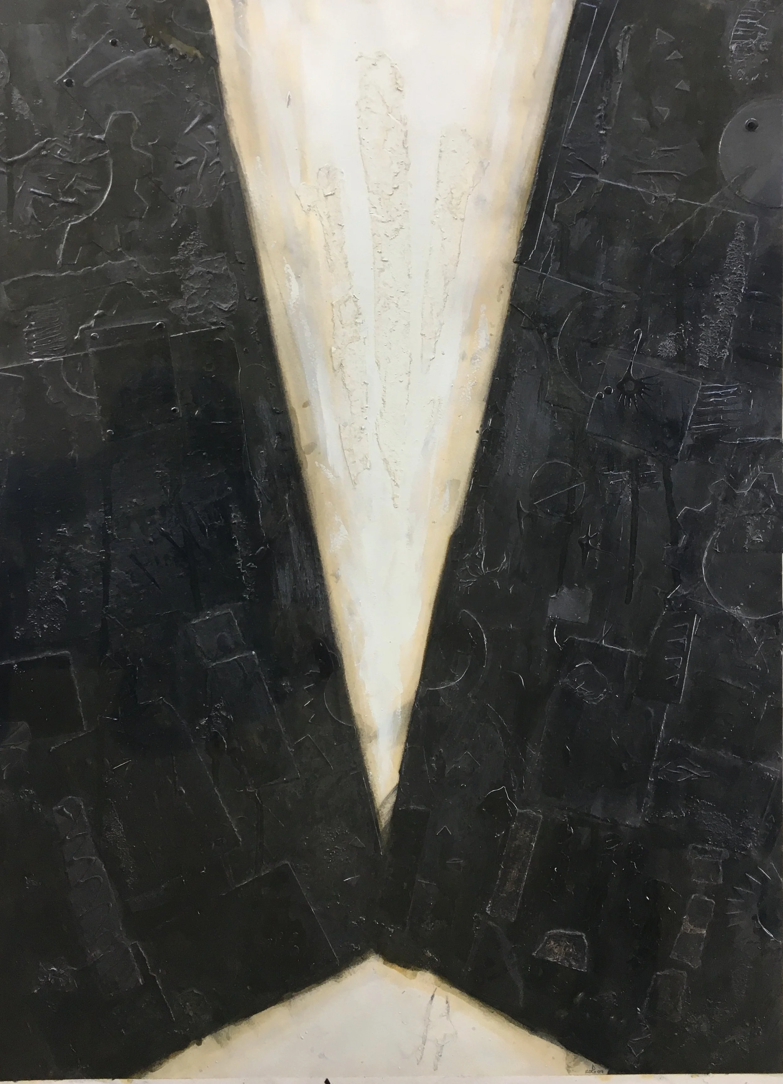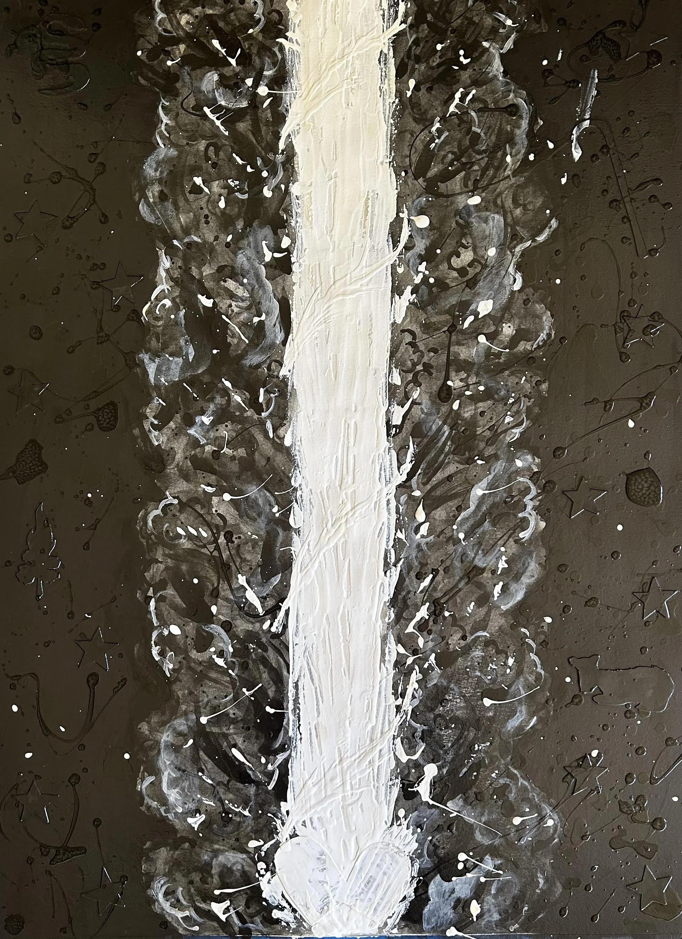 These images were created over the long period of time I have been interested in and experimenting with the process of “painted drawings” using pencil, powdered graphite, polyurethane, and white enamel paint on heavy watercolor paper. The process involves many layers of drawing with pencil, painting with the powdered graphite mixed in various shades, and application of inclusions, all bound with polyurethane. It is, by the nature of the mediums, a lengthy process. There are parts that involve intricate and detailed attention and areas that are loose and frenetic. It is also not a medium that can be photographed or reproduced well enough to see its true effects, layering, and texture.
