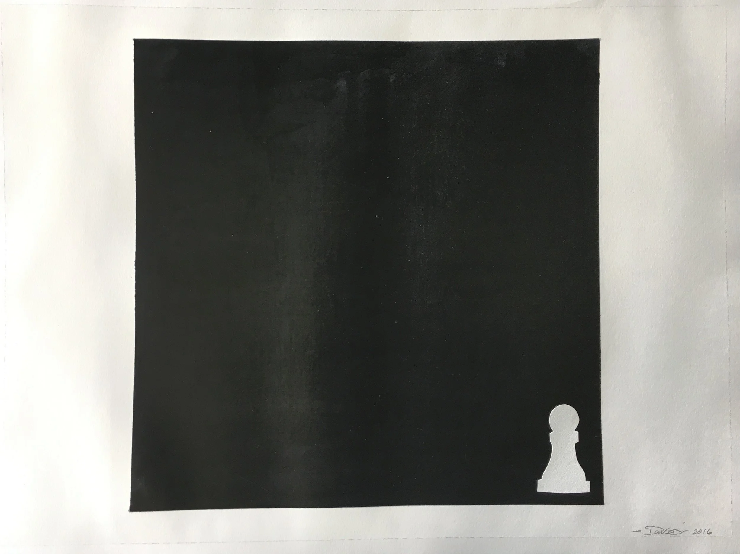 These images are another of the series that were created with the graphite and polyurethane, and although abstract, contain more recognizable forms, most notably the pawn symbol, common to each.