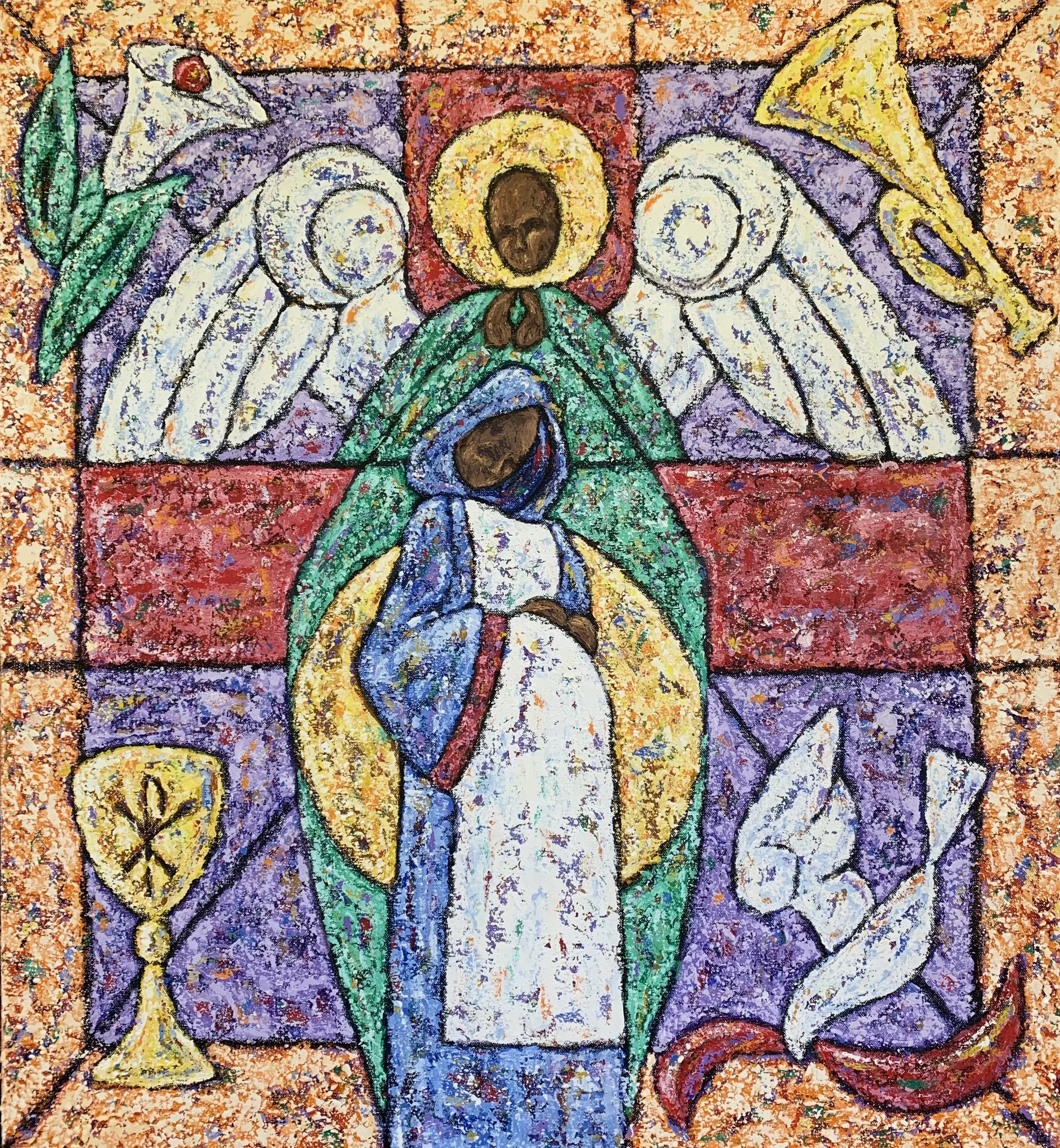 This series was born of my experimentations with impasto acrylic applied with a palette knife over a dark base paint and the desire to try to recreate the visual feel of stained-glass windows. I had been playing around with the palette knife painting, and I was liking the results I was getting, so I decided to see how a series would come out. At around the same time I was looking at photographs of stained-glass windows, especially those of churches and cathedrals. I really like the sense of light and space these windows can create in an environment.